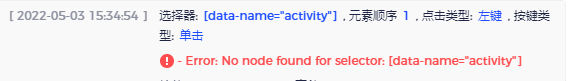 如下图所示 No node found for selector : [data-name=”activity”]——表示:[data-name=”activity”]选择器没有定位到网页元素