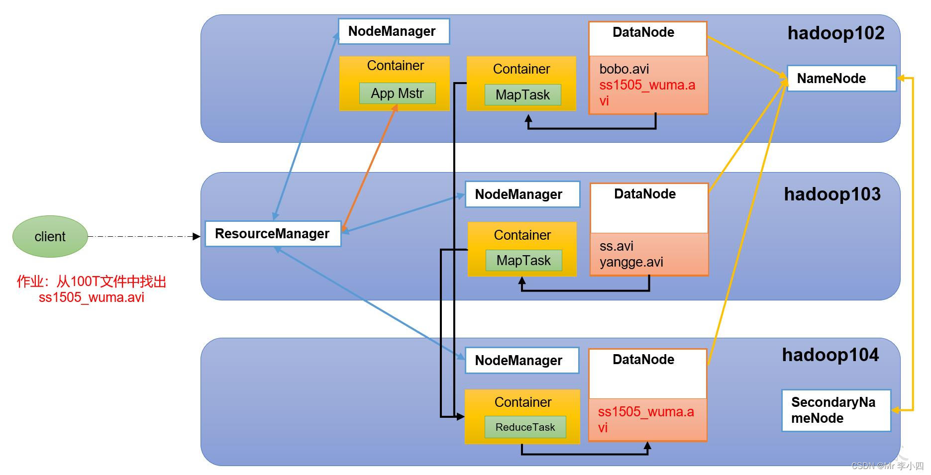 - NodeManager(NM):每个节点上的资源和任务管理器。