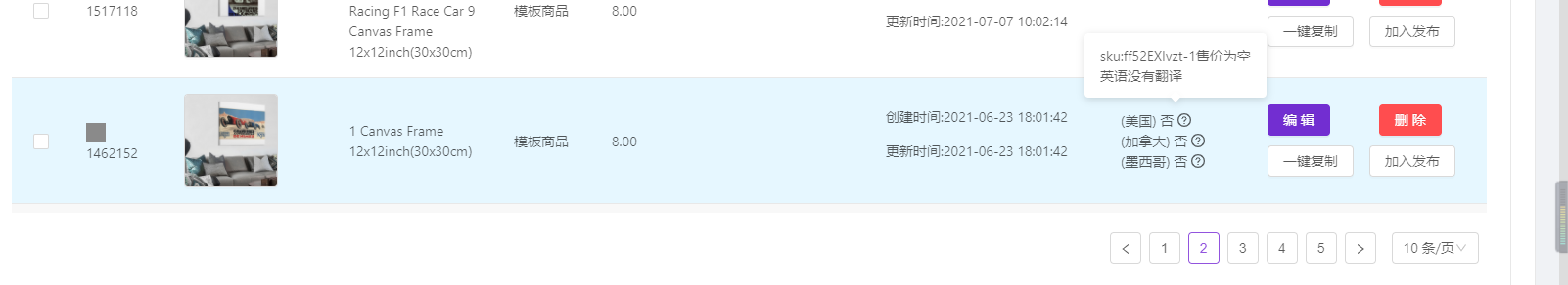 5.在产品发布状态里可以显示产品有哪些站点可以能不能发布,不能发布的原因是什么。能发布的可以之间勾选后点击加入发布