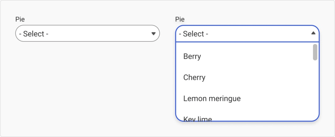 标准下拉菜单是针对我们所理解的「下拉」这个动词。在激活状态,当你点击貌似文本输入栏的地方时,它会打开一个菜单。