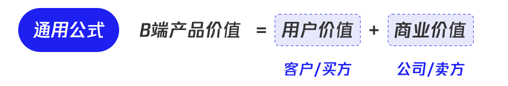 用户价值我们同样来套用公式:B 端产品价值=用户价值+商业价值