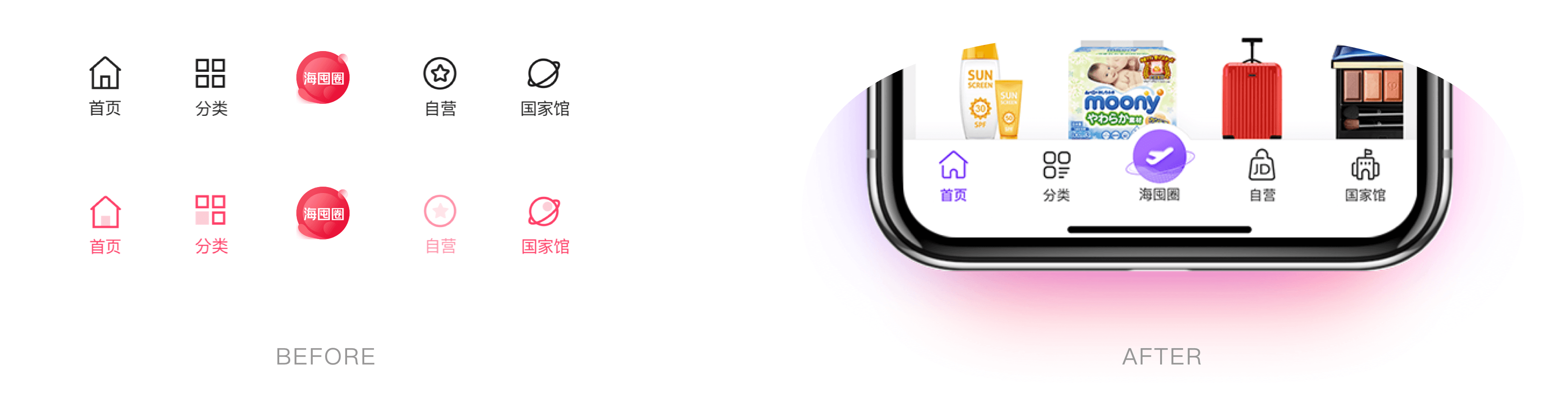 2020年上半年我们对京东国际频道进行了品牌视觉的全新升级,希望通过品牌强化及体验升级两个方向实现加强正品心智,提升频道访问量,品牌强化的业务目标。