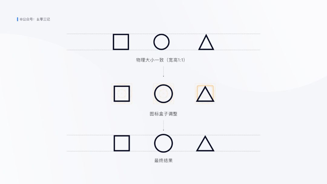 由于不同图标外轮廓不同,就会导致哪怕在物理大小上相同的图标(假设都是24×24),但视觉上可能还是会给人大小不一致的感受,因此我们需要借助前面提到的图标盒子进行约束调整。