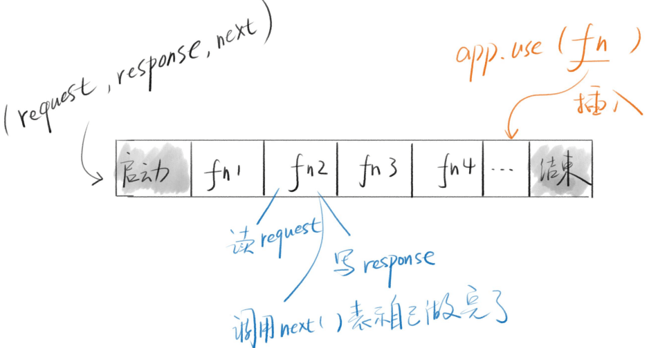 app.use(``function``(req,res,next){}) - 图中的·启动·意思是:express会在每次请求进来时,做一写准备工作,就是这个启动程序