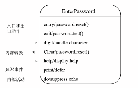 保留关键字:entry/进入动作、exit/退出动作、do/活动(活动不中断,活动序列会中断)