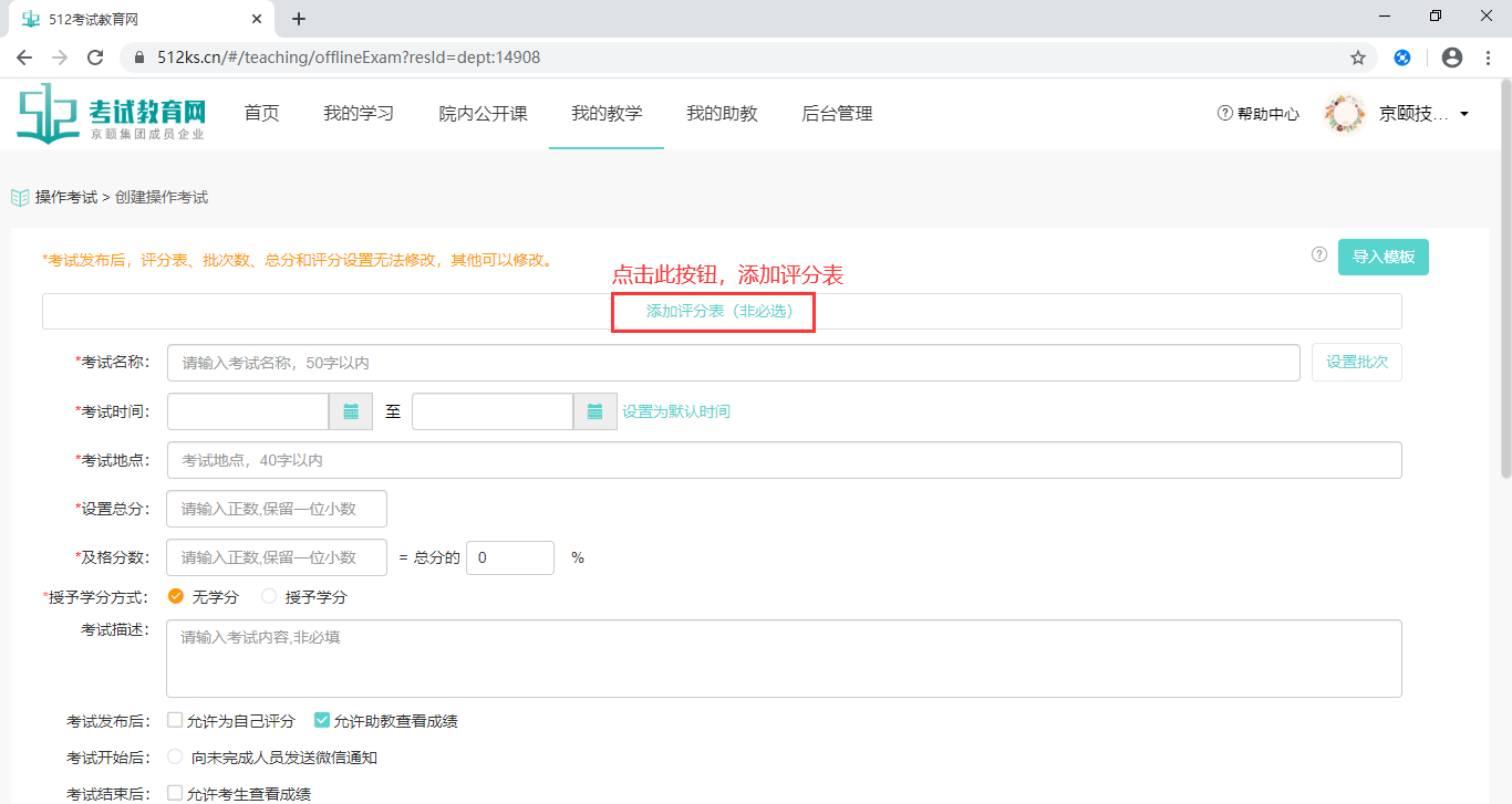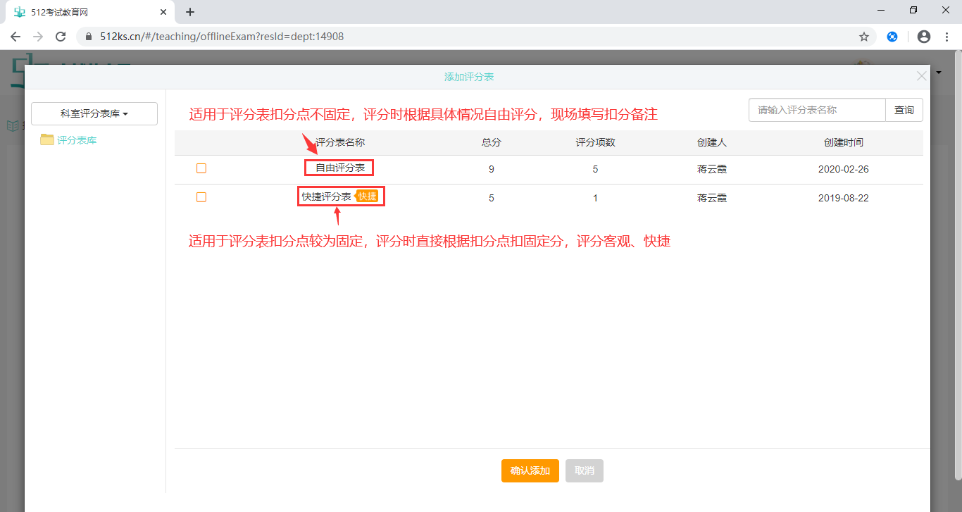 【Step 3】点击“添加评分表”按钮,添加评分表
