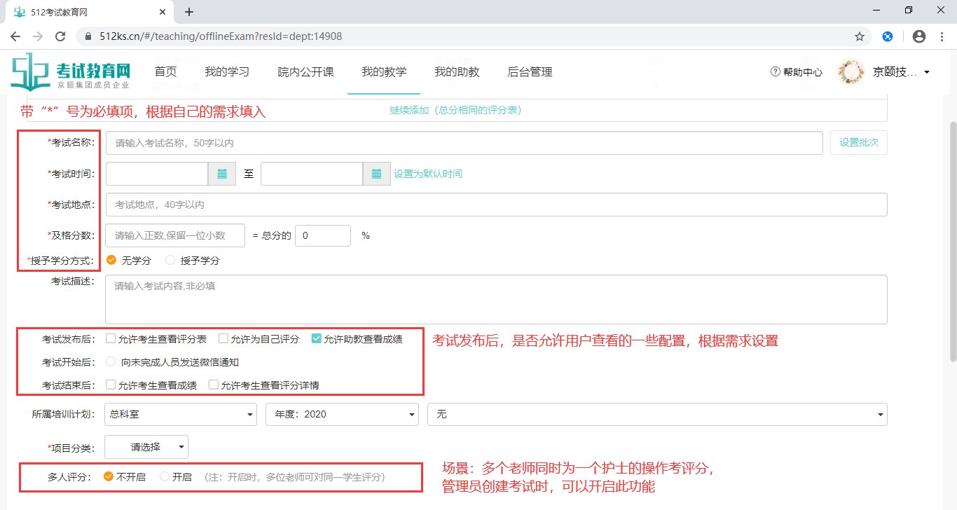 【Step 5】 填写完毕后,发布操作考试,选择考试学员:谁参加选谁