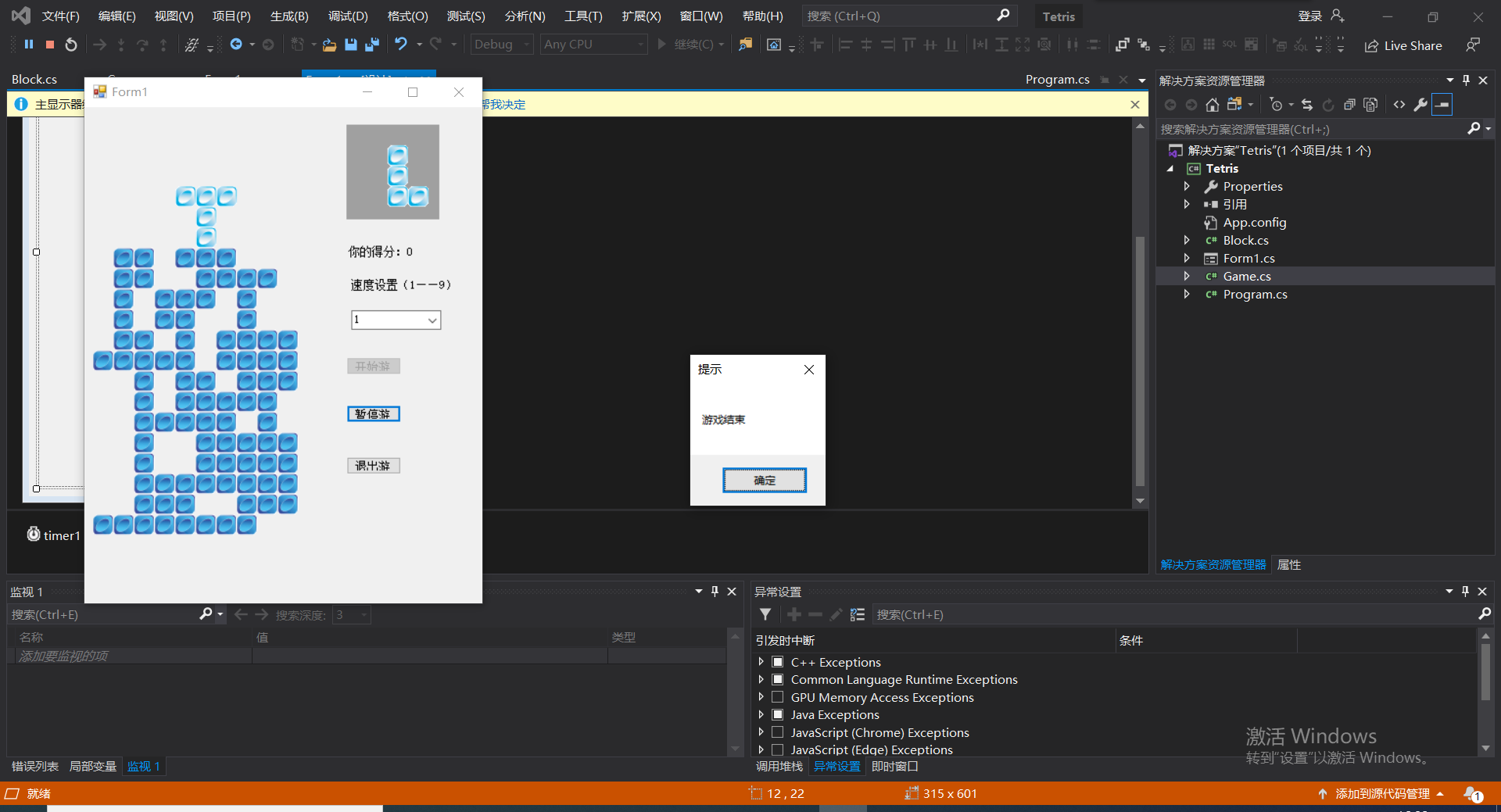 一、完成俄罗斯方块unity版并上传教材