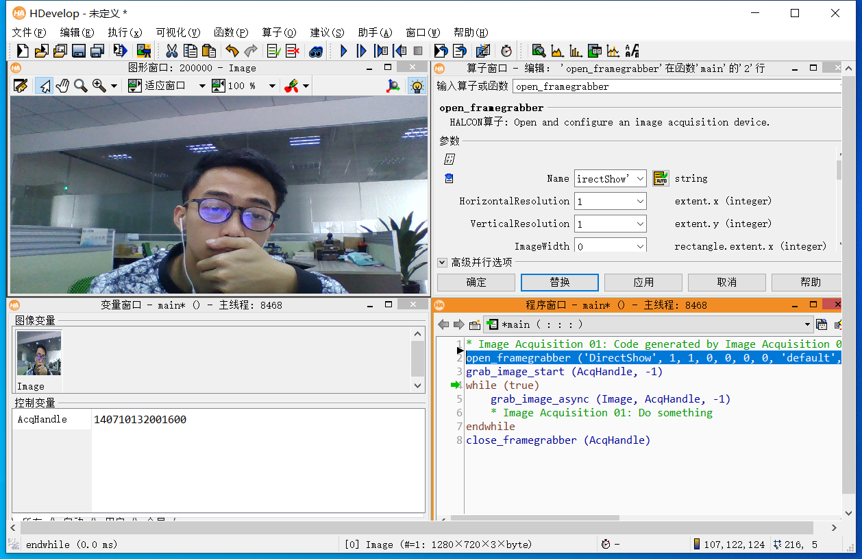一、成功启动halcon并启动摄像头