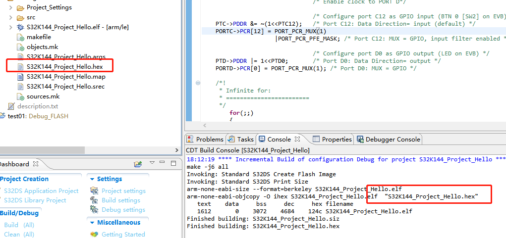 还可以生成:S32DS支持生成不同输出格式文件S19—Motorolas S-record,HEX—IntelHEX和bin文件—Raw binary。
