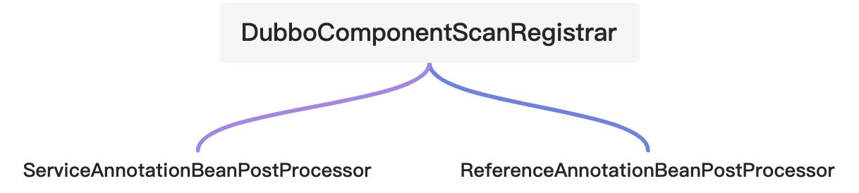 <br />该注解导入了DubboComponentScanRegistrar类,其registerBeanDefinitions方法导入了2个spring的后置处理器ServiceAnnotationBeanPostProcessor和ReferenceAnnotationBeanPostProcessor