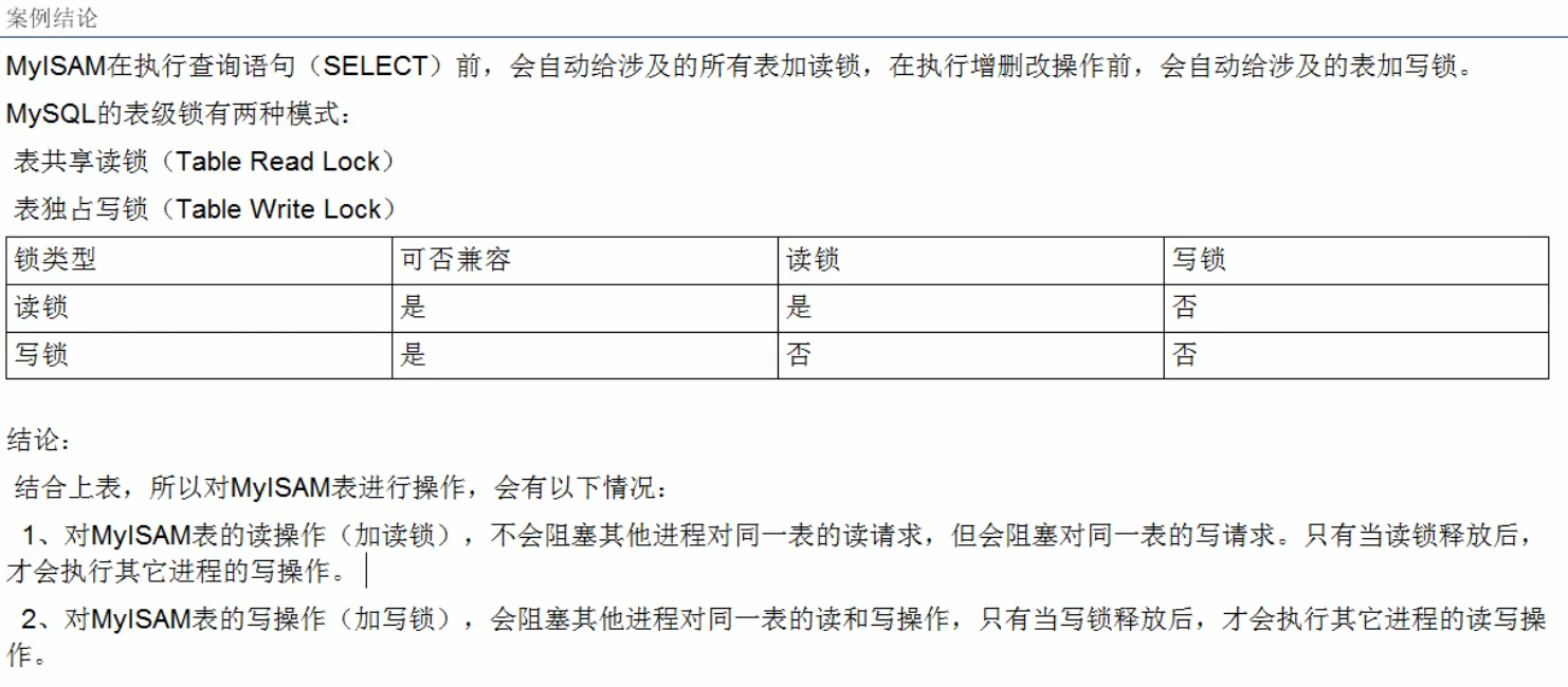 特点:偏向MyISAM存储引擎,开销小,加锁快;无死锁;锁定粒度大,发生锁冲突的概率最高,并发度最低。