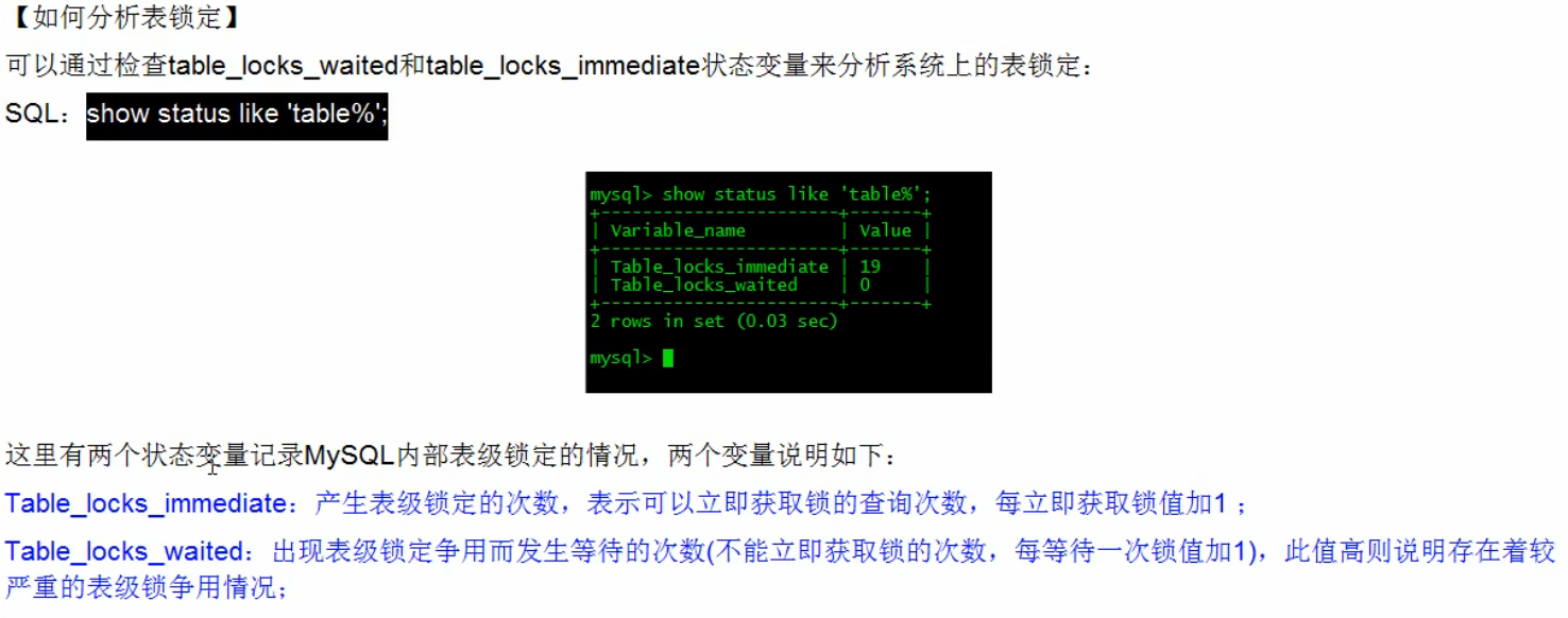 补充:加读锁的session也不能修改加读锁的表。简而言之,就是读锁会阻塞写,但是不会堵塞读。而写锁则会把读和写都堵塞 - 如何分析表锁定