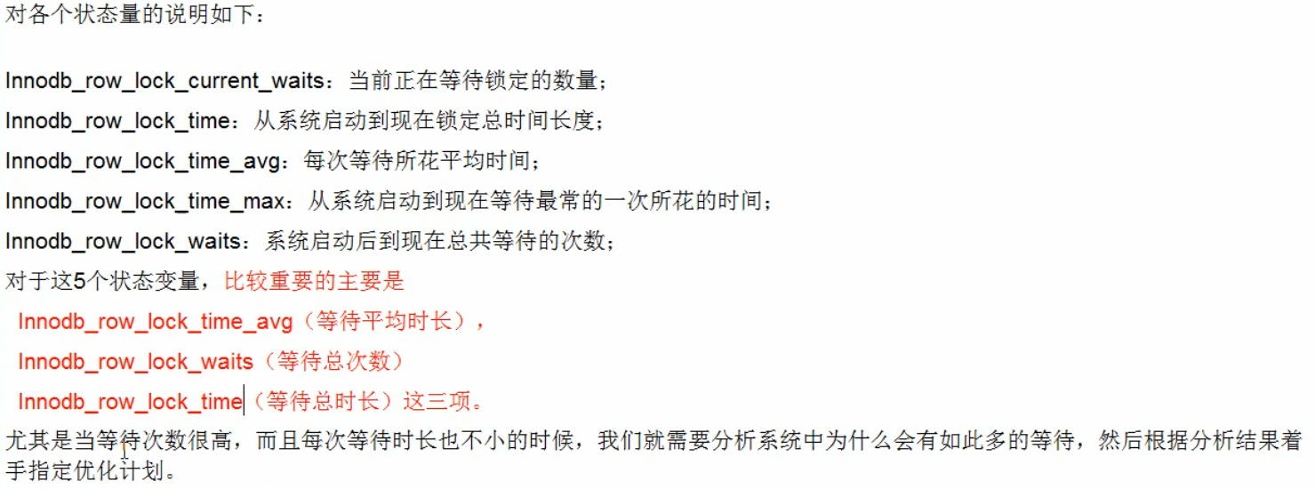 - 偏向InnoDB存储引擎,开销大,加锁慢;会出现死锁;锁定粒度最小,发生锁冲突的概率最低,并发度也最高。