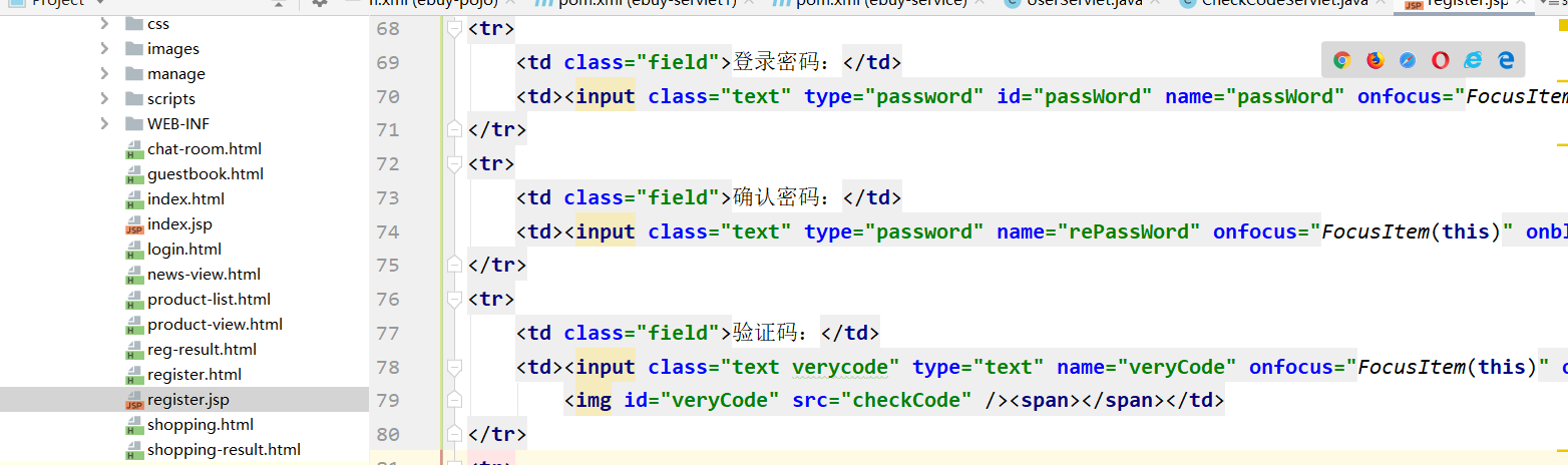 表示层:发送验证码 UserServlet.javaCheckCodeServlet.javaregister.java