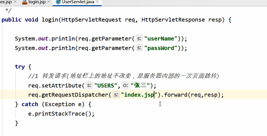 重定向也能实现地址跳转,发送了了两次请求,上次的request作用域拿不到users,只能用session,不能依靠servlet了