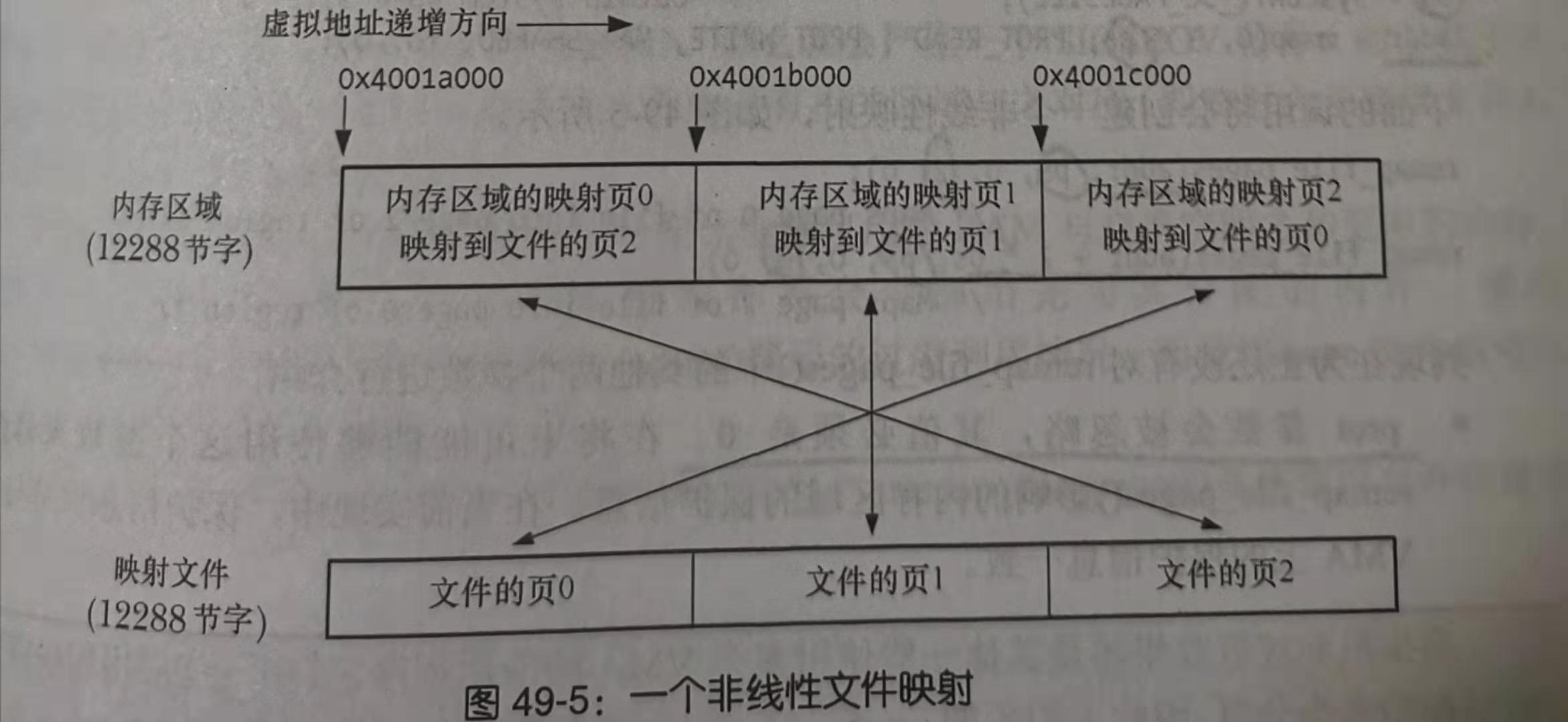 使用MAP_FIXED的mmap调用创建非线性映射的伸缩性不好,每个mmap调用都会创建一个独立的内核虚拟内存区域(VMA)数据结构,大量的VMA会降低虚拟内存管理器的性能,/proc/PID/maps的一行代表一个VMA