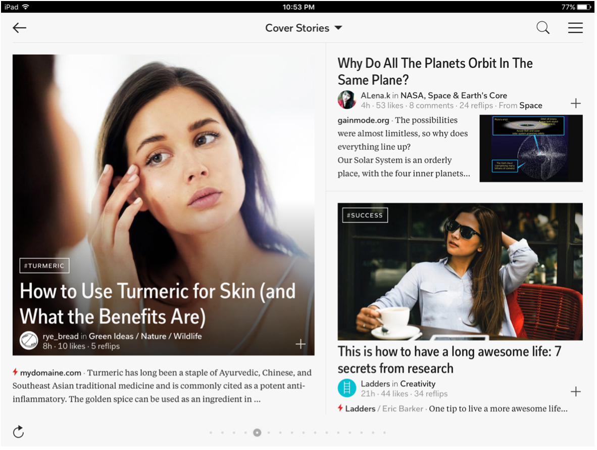 - 可以垂直滚动或横向展示的内容,可以按时间倒序或正序排列,也可以按照综合算法排序(比如用户参与度、点击次、兴趣等)