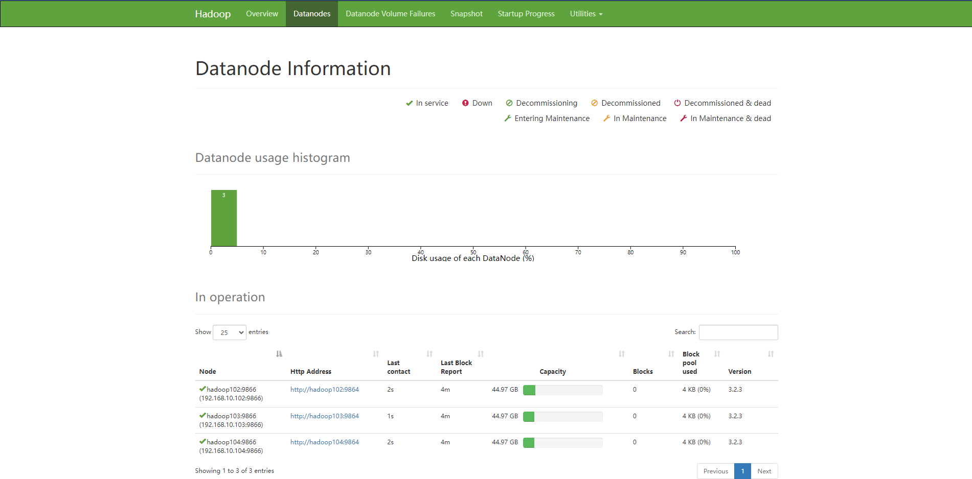 正常情况下,集群启动的DataNode信息都会在网页中展示,如果展示不全,可能存在以下问题: