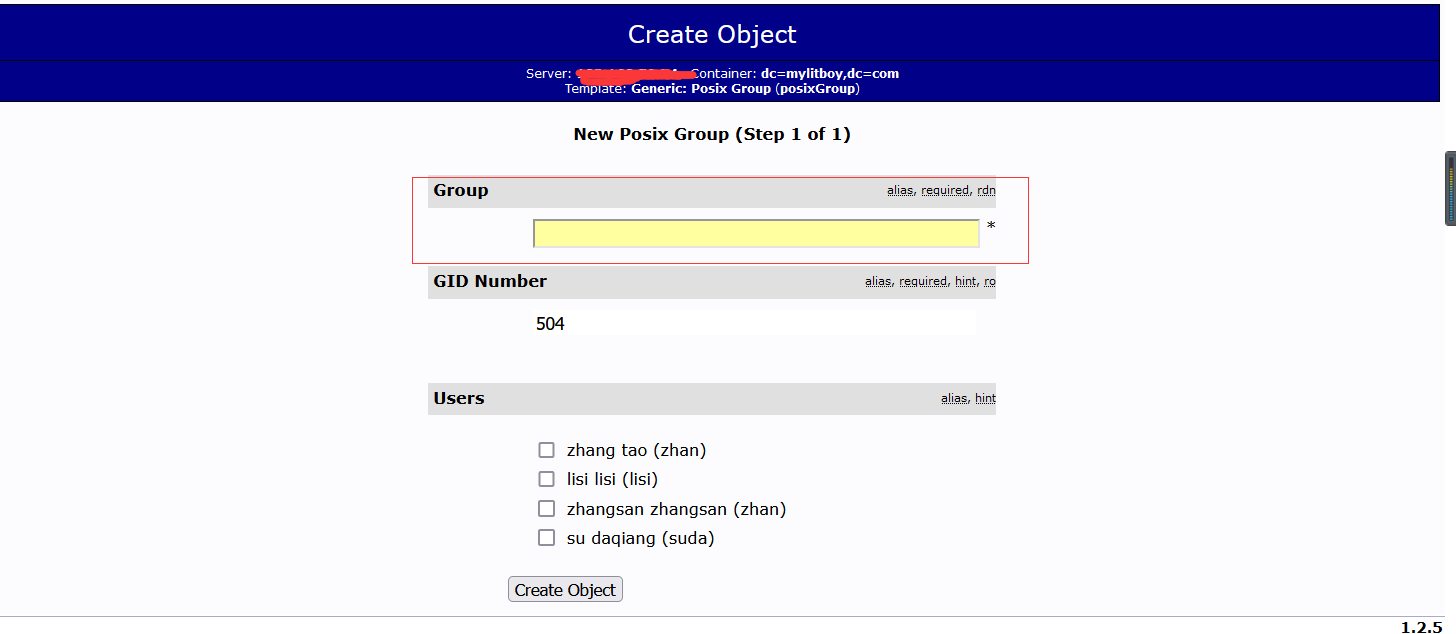填写相关信息,其中User ID即为登录的用户名,Password选择sha,填写完成,点击【Create Object】
