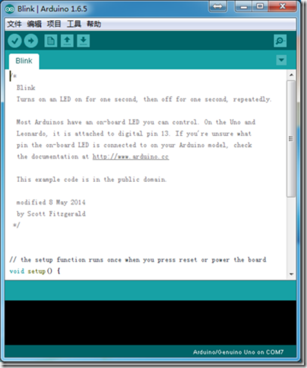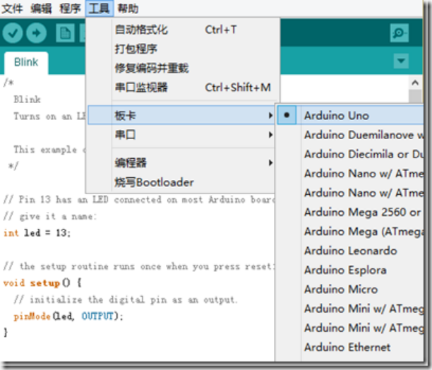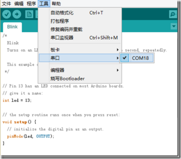 Arduino如何使用帮助<br />1:打开ArduinoIDE软件<br />2: 帮助选项中,即可找到故障排除<br /> <br /> <br /> <br />Arduino综合开发环境-arduino编译器。包括一个用来写代码的文字编辑器,一个信息反馈窗口,一个串口监视器和一些按钮和菜单。它连接着arduino硬件来进行上传程序和信息交流。 <br /> <br />[](http://arduino365.com/wp-content/uploads/2016/09/Open-Live-WriterArduino_90B92016090701_2.png)<br /> <br />**设置中文** 软件安装后有可能是英文,这时候需要设置为中文,更方便我么使用(中文仅仅是菜单是中文,编程还是要英文的)。设置路径:File > Preferences,找到Editor language项,将其设为中文,关闭Arduino主程序并重新打开。<br />**设置板子** 在菜单里面个工具按钮,打开后尤其要注意“板”和“端口”这两个子菜单。 板:每次打开编译器之后,你要进入板这个菜单,选择您正在使用的主控板型号。PS:菜单具有记忆功能,如果板子型号没有换,就不用重复改了。 端口:首先查看“设备管理器”你的主控板被识别为的COM口号是多少,然后进入“端口”菜单选择对应的COM号就可以了。PS:更换不同的USB位置时候, COM号会改变。<br />[](http://arduino365.com/wp-content/uploads/2016/09/Open-Live-WriterArduino_90B92016090702_2.png)<br /> <br />[](http://arduino365.com/wp-content/uploads/2016/09/Open-Live-WriterArduino_90B92016090703_2.png)<br />**功能讲解** [](http://arduino365.com/wp-content/uploads/2016/08/Open-Live-WriterArduino_90B9play_2.png)编译功能:用来检测编辑的程序是否有编译问题。 [](http://arduino365.com/wp-content/uploads/2016/08/Open-Live-WriterArduino_90B9export_2.png)上传功能:将编译成功的程序上传到主控板上。(此功能会自动先执行编译功能,编译成功后才会上传。编译不成功则会报错。) [](http://arduino365.com/wp-content/uploads/2016/08/Open-Live-WriterArduino_90B9new_2.png)新建功能:新建一个新的项目。 [](http://arduino365.com/wp-content/uploads/2016/08/Open-Live-WriterArduino_90B9open_2.png)打开功能:用来打开已有的arduino文件。 [](http://arduino365.com/wp-content/uploads/2016/08/Open-Live-WriterArduino_90B9save_2.png)保存功能:保存目前的项目。 [](http://arduino365.com/wp-content/uploads/2016/08/Open-Live-WriterArduino_90B9serial_monitor_2.png)串口监视器:打开串口监视器。<br /> <br />**注意事项:** Arduino IDE是Arduino产品的软件编辑环境。简单的说就是用来写代码,下载代码的地方。任何的Arduino产品都需要下载代码后才能运作。我们所搭建的硬件电路是辅助代码来完成的,两者是缺一不可的。如同人通过大脑来控制肢体活动是一个道理。如果代码就是大脑的话,外围硬件就是肢体,肢体的活动取决于大脑,所以硬件实现取决于代码。 Arduino IDE基本也只需要用到上面标示出来的部分就可以了,上图大部分的白色区域就是代码的编辑区,用来输入代码的。注意,输入代码时,要切换到英文输入法的模式。下面黑色的区域是消息提示区,会显示编译或者下载是否通过。<br />**Blink程序:** Arduino官方编译器自带了很多示例程序,其中最有名的也就是Blink程序了,相当于程序界的Hello World。 程序的效果是使得主控板上板载的LED,一秒一亮。ZHONGBEST改进版在出厂时候已经给大家上传了这个程序,主控板通电即可看到效果。 1、插上USB线,打开Arduino IDE后,找到“Blink”代码。文件 > 示例 > 01.Basics > Blink 点击Blink,就会出现一个新窗口,窗口内已经写好了Blink的程序代码。 前一半部分淡灰色的是代码说明,不对实际程序产生作用,void setup这行开始是实际代码。 点击[](http://arduino365.com/wp-content/uploads/2016/08/Open-Live-WriterArduino_90B9export_5.png)就可以上传到主板了。可以试着改变delay函数的数值,来看下闪烁频率的变化。<br />[](http://arduino365.com/wp-content/uploads/2016/09/Open-Live-WriterArduino_90B92016090704_2.png)<br />[](http://arduino365.com/wp-content/uploads/2016/09/Open-Live-WriterArduino_90B92016090705_2.png)<br /> <br /> <br />