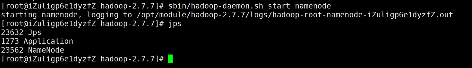 [root@izuligp6e1dyzfz hadoop-2.7.2]# sbin/hadoop-daemon.sh start namenode
