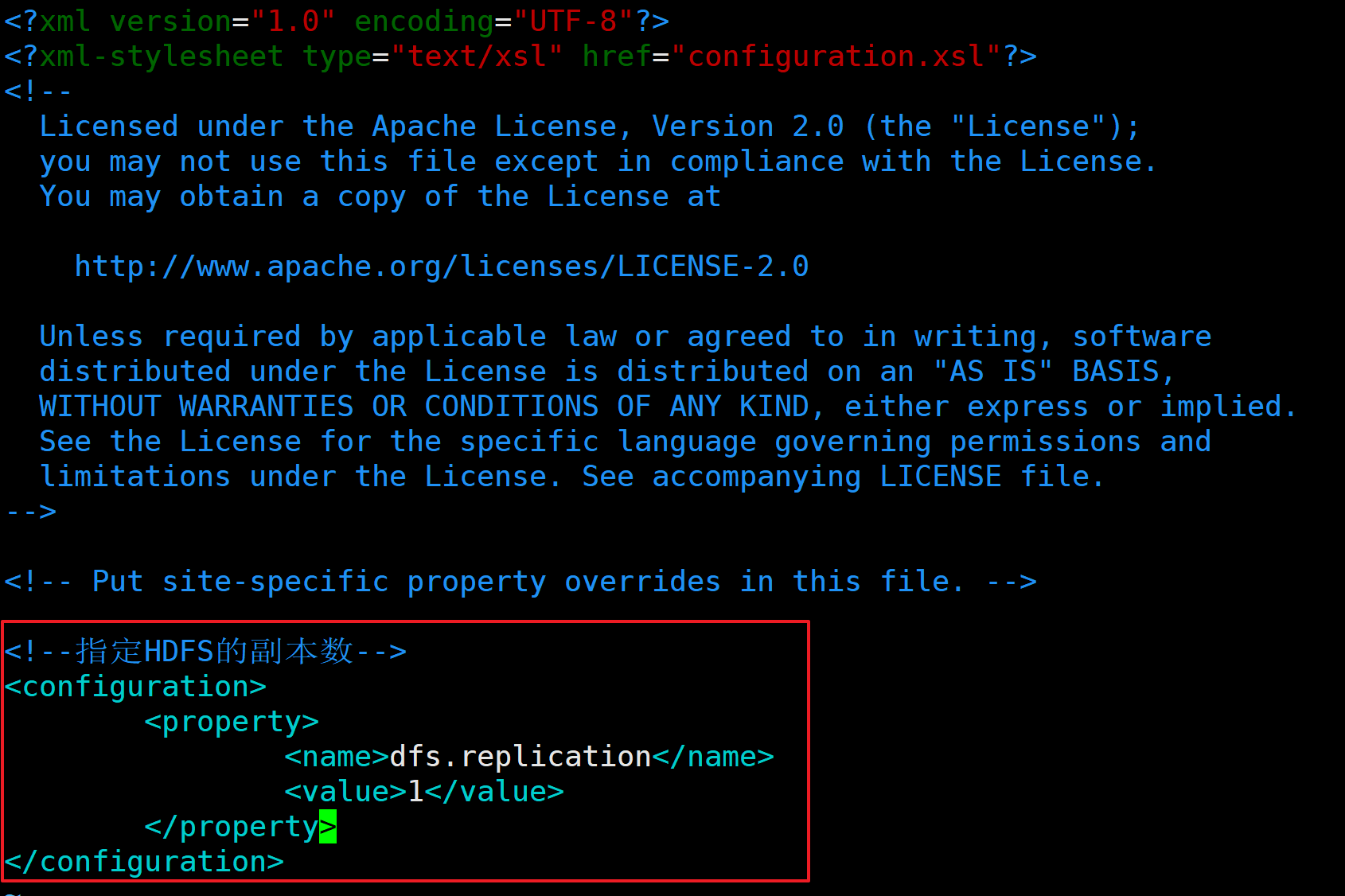<!--指定HDFS副本的数量-->