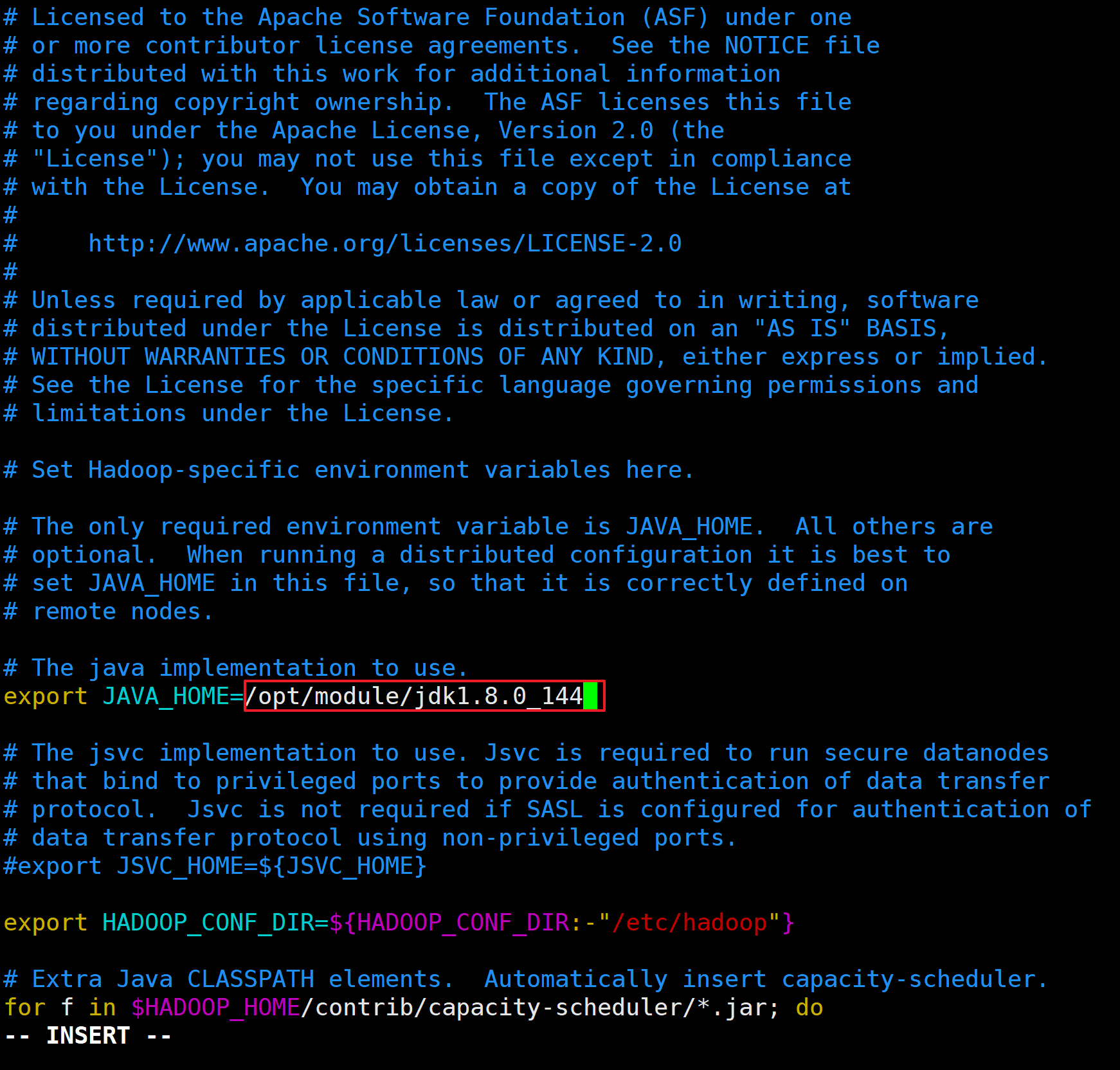 export JAVA_HOME=/opt/module/jdk1.8.0_144