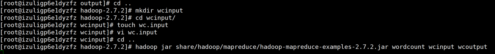 [root@izuligp6e1dyzfz hadoop-2.7.2]# cd wcinput/