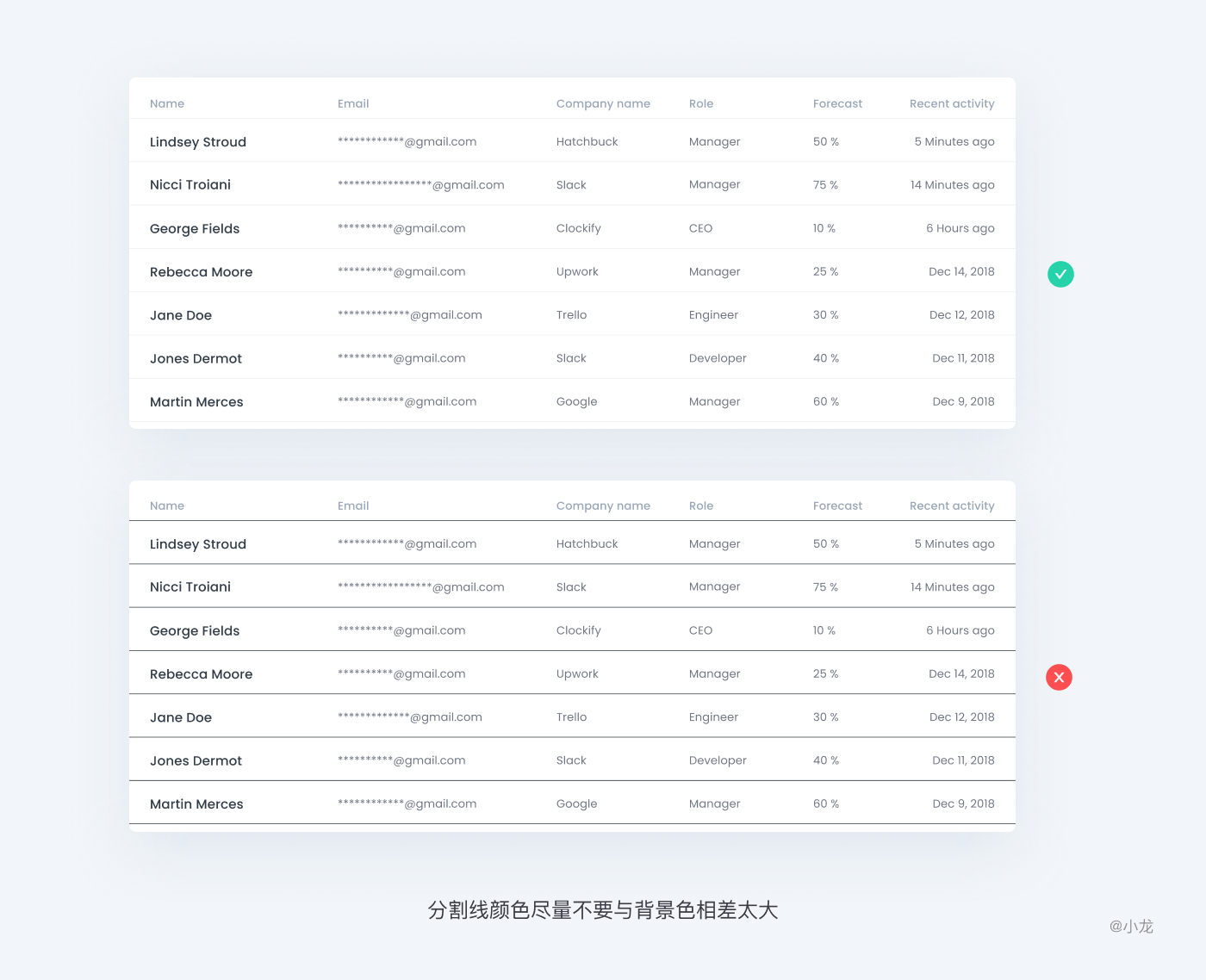 行高是非常重要的参数,直接影响着阅读体验。较小的行高承载更多信息,让用户无需滚动鼠标即可看到更多数据,但会降低扫描效果,导致视觉解析错误。适宜的行高使得数据更易于被阅读,但这不代表行高越大越利于阅读。