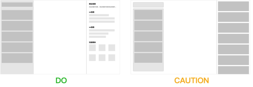 而针对列表与地图的左右排布结构而言,因为两者处于同其级别的元素,更具左右、上下的阅读习惯,其包含了列表为主、地图为从的逻辑形式。