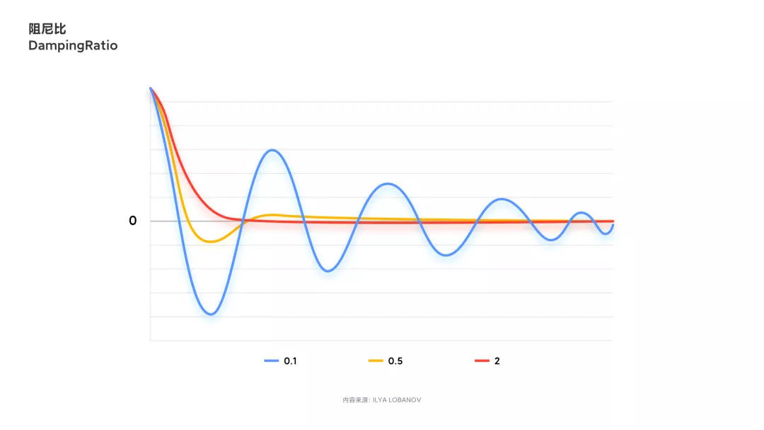 弹性(Spring)**弹性曲线是一种基于阻尼弹性振荡的原理实现的复杂曲线,阻尼比决定了曲线具体动画感受,根绝阻尼比的不同,弹性曲线可以分为三种,分别是欠阻尼运动、临界阻尼运动及过阻尼运动。在腾讯文档中,通常只会使用到欠阻尼运动及临界阻尼运动。