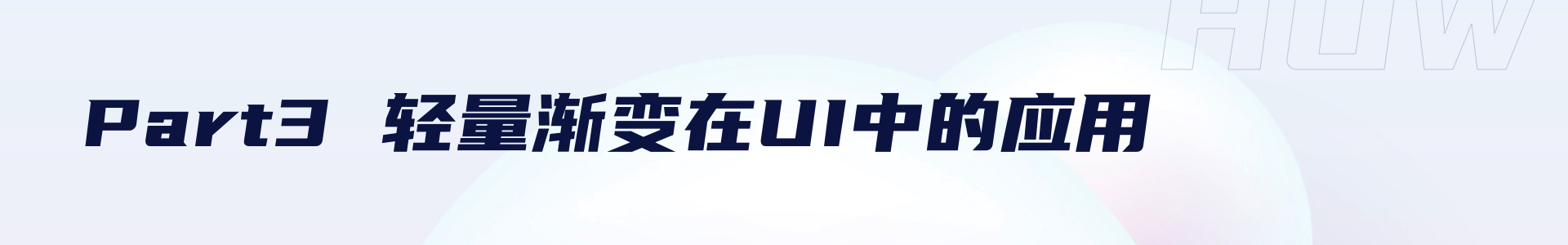 轻量渐变是一种简约且高度可用的元素,它可以创造出一些时尚的氛围,但是又不会有信息过载的担忧,这使得轻量渐变成为一种富有感染力又非常实用的设计解决方案。轻量渐变特点之一为明度高、饱和度低,色彩轻量而透气。在轻量渐变的使用过程中,同色系、邻近色系较多,其过渡自然柔和。
