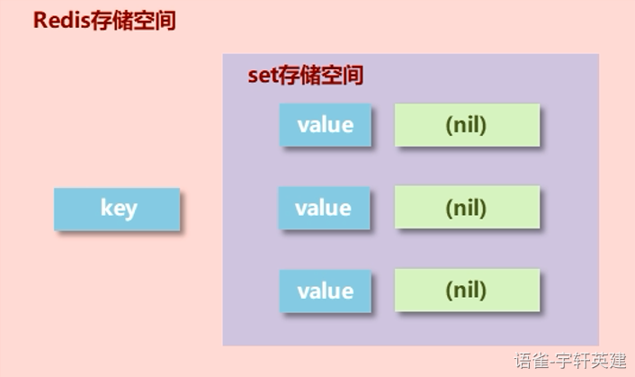 无序集合,集合成员是唯一的,这就意味着集合中不能出现重复的数据。<br />与Hash类型一致,但用 Field 存放数据, Value为 nil,通过 key 获取的是在key下所有的数据。类似 Java中的 HashSet。<br /><br />注:指令中的members实际就是value,这里改为value方便理解