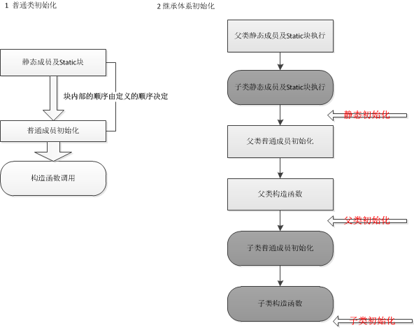 - `<clinit>()` 方法与类的构造器函数(`<init>()`)不同,他不需要显式地调用父类构造器,虚拟机会保证在子类的`<clinit>()`方法执行之前,父类的`<clinit>()`方法执行已经完毕。因此在虚拟机中第一个被执行的`<clinit>()`方法的类肯定是`java.lang.Object`。- 由于父类的`<clinit>()`方法先执行,也意味着父类中定义的静态语句块要优先与子类的变量赋值操作<br />- `<clinit>()`对于类或接口来说不是必需的,如果一个类中没有静态语句块,也没有对静态变量的赋值操作,那么编译器可以不为这个类生成`<clinit>()`方法。- 接口中不能使用静态语句块,但仍然有静态变量初始化的赋值操作,因此接口与类一样都会生成`<clinit>()`方法。但接口与类不同的是,执行接口的`<clinit>()`方法不需要先执行父接口的`<clinit>()`方法。只有当父接口中定义的变量使用时,父接口才会初始化。另外,接口的实现类在初始化时也一样不会执行接口的`<clinit>()`方法。- 虚拟机会保证一个类`<clinit>()`方法在多线程环境中被正确地加锁、同步。如果`<clinit>()`方法执行很耗时,那么会造成多个线程阻塞。