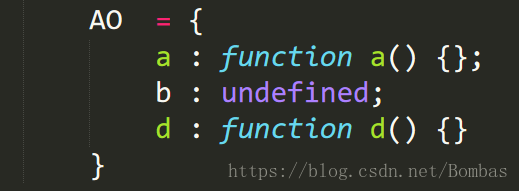 1. 4.在函数体里面找函数声明,值赋予函数体:由于在函数中有 function a() {} ,这一函数因此此时AO中 a = function a() {}