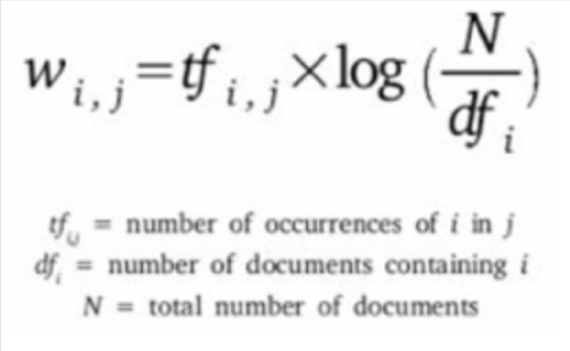 通过使用以下提到的几个技术,文本数据可以被直接量化为数量值:**A**. 词频 – 逆文档频率(Term Frequency – Inverse Document Frequency)(TF– IDF)TF-IDF是一个有权重的模型,它常被用于信息检索(information retrieval)问题。它的目的是在于:基于单词在文档里出现的频率(不考虑严格的排序),将文档转化为向量模型。例如:假设这里有个数据库,里面有N个文档。对于每个文档“D”来说,TF和IDF被定义为:Term Frequency(TF):对于一个术语(term)“t”来说,它在“D”里的TF为“t”在“D”里出现的次数。Inverse Document Frequency(IDF):IDF对于一个术语(term)来说,它被定义为:在语料库里所有文档数,与,包含术语T文档的数,的一个比率的对数。TF . IDF:TF IDF的公式(如下所示)给出了一个术语(term)在语料库(文档的集合)里的相对重要性。