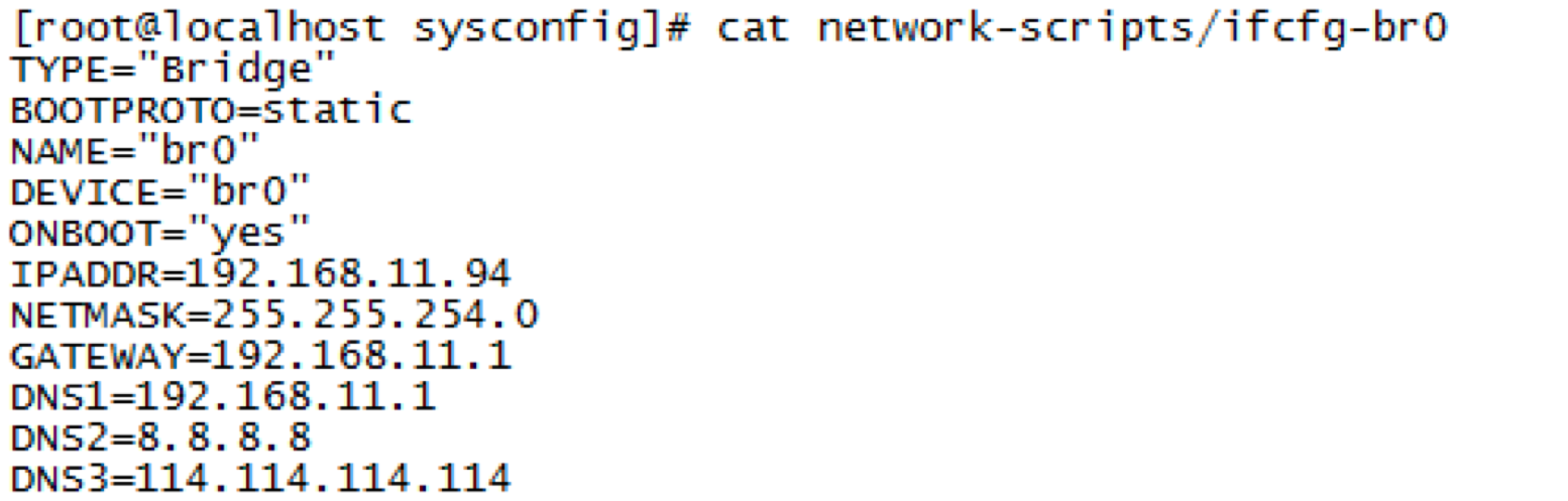 vi ifcfg-br0,修改成以下信息,名称记得一定要改成 br0