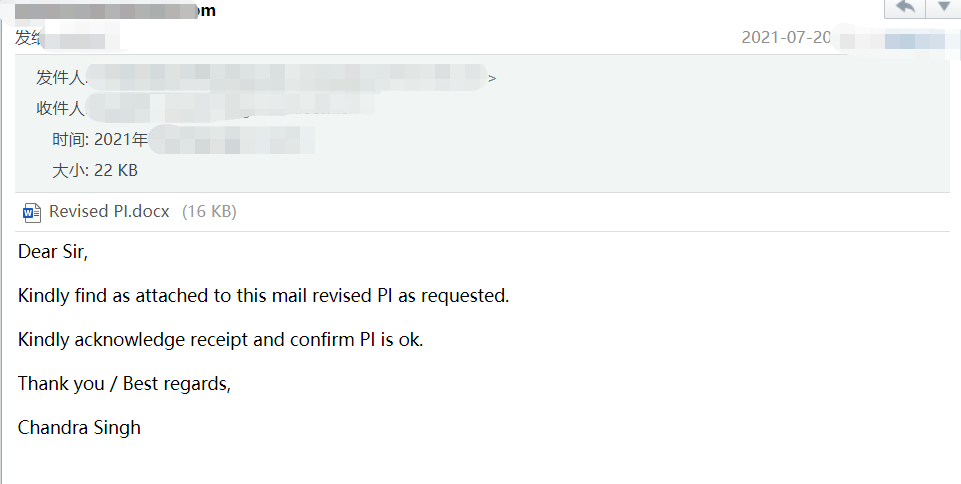 此封邮件发件地址位于边境附近,且邮件的目的为财务诈骗,判断该邮件为国内黑产组织所发,使用的姓名为曾X冲,收款账号为农业银行:62284801583259**。