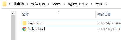 在这里,我的项目名字是loginVue,所以我的dist文件夹名称应该更换为loginVue
