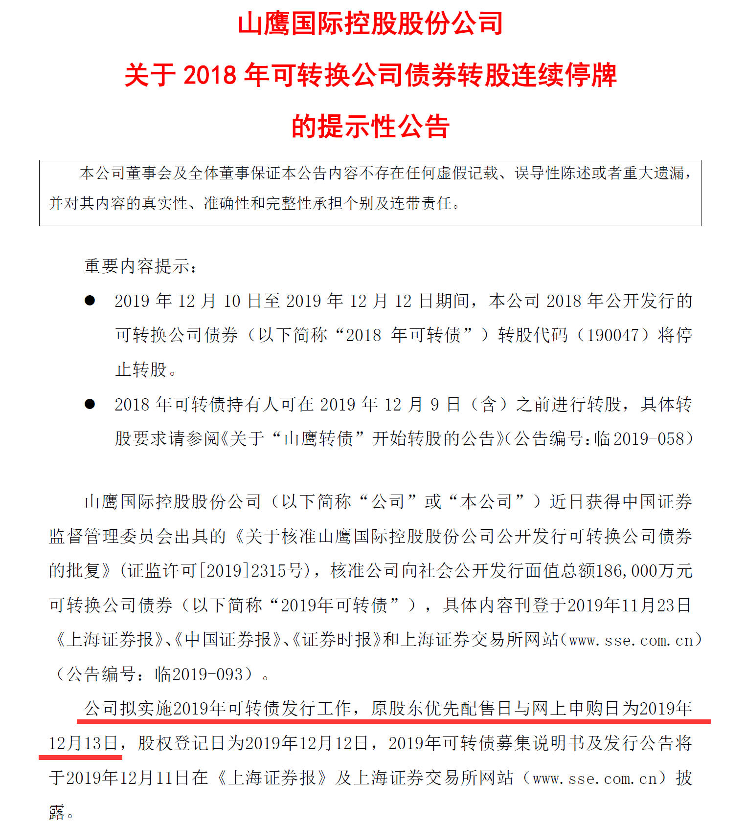 - 2019年12月5日投资提示 - A股首例,山鹰纸业同时上市两只转债?