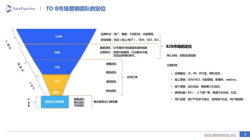 1)当市场不断追根溯源的时候,将会针对商机不够&质量差的争议,得出市场团队自己客观事实的判断,是真的不够还是在转化漏斗商机这一环,和销售部门的衔接上出现了问题。