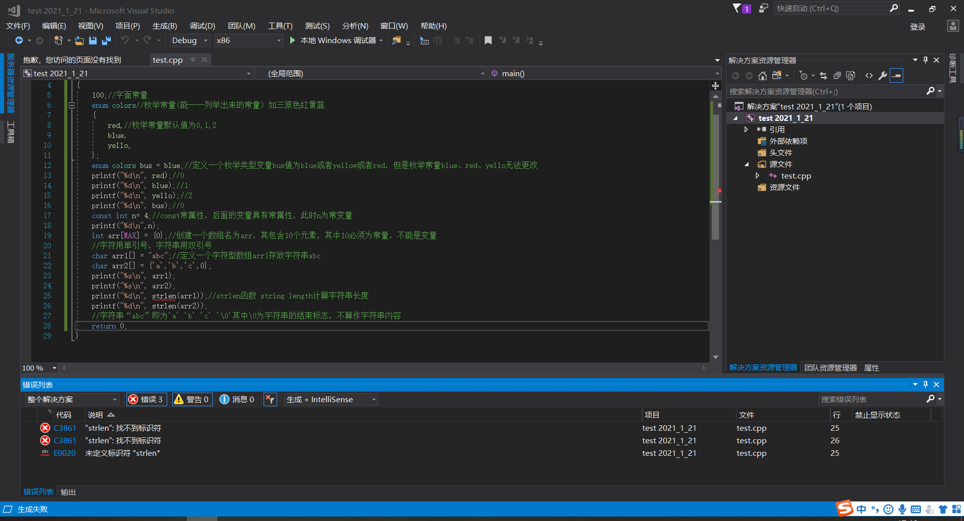 1、VS无法识别strlen等函数