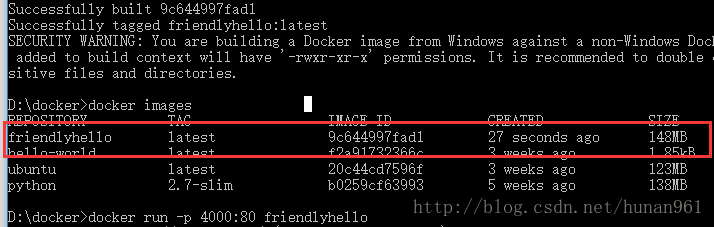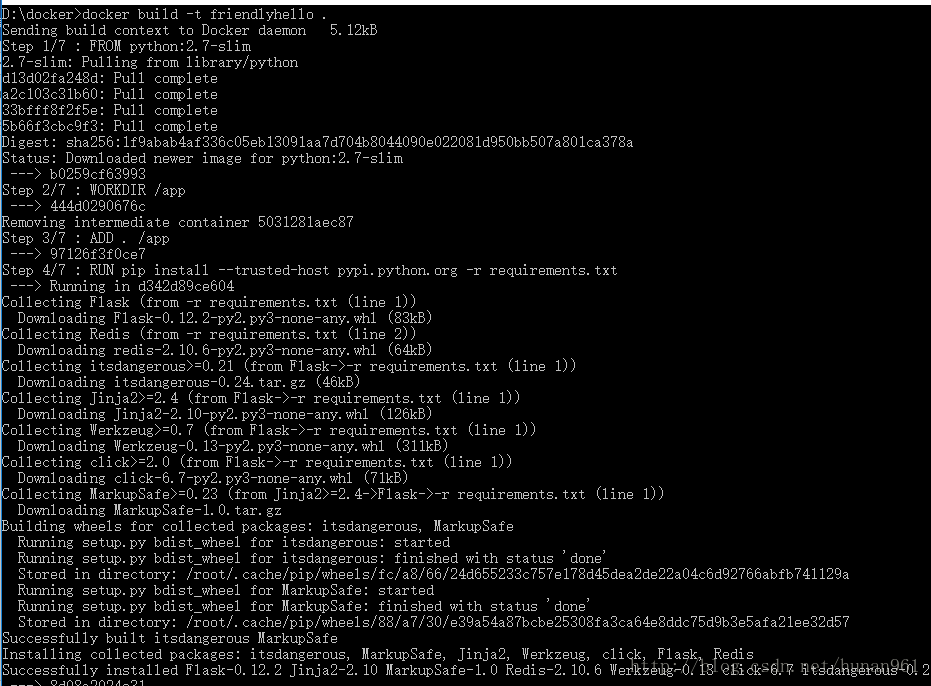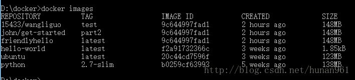 version: “3” services: web:<a name="TE2bC"></a> ### 构建镜像 在docker目录下打开cmd.exe运行命令(确保能够找到Dockerfile文件,镜像取名叫friendlyhello): <br />`docker build -t friendlyhello .`<br />ps:千万不要落了上面那行后面的那个点,曾经入过坑的。。命令包括后面的那个点 <br /><br />然后再执行命令: <br />docker images <br /><br />运行镜像程序: <br />docker run -p 4000:80 friendlyhello <br /><br />可以看到Python正在为应用程序提供消息的[http://0.0.0.0:80](http://0.0.0.0/)。但是,这个消息来自容器内部,它不知道我们将该容器的端口80映射到4000,从而打开URL: [http://localhost:4000](http://localhost:4000/)<br /> <a name="6Ikul"></a> ### 停止容器运行 首先在接着上面的操作步骤后按下ctrl+c在终端退出,这并不意味着镜像停止运行了 <br />键入docker container ls 列出正在运行的容器 <br /><br /><br />运行命令: <br />`docker container stop <Container NAME or ID>`<br />停止容器。否则,在下一步中重新运行容器时,将会收到错误响应。 <br /> <a name="et8C1"></a> ## 5.联系Docker Hub的常用操作 <a name="K322X"></a> ### 登录到Docker Hub 前面已经说过了,docker和git的操作有类似之处,所以docker也 <br />有远程仓库,如果前面已经注册过并登录了docker cloud,那么 <br />访问网址:[https://hub.docker.com](https://hub.docker.com/) 在里面创建存储库,否则先 <br />注册吧。 <br /> <a name="TvgKs"></a> ### push镜像 前面在本地创建了一个friendlyhello的镜像,现在要把它push到 <br />自己的docker hub的存储库中去,首先: <br />1. 登录docker hub (我已经登录过了。。再登录一次吧) <br /><br />2. 标记镜像: <br />把镜像放入wangliguo存储库并标记为test <br /><br />3. 查看镜像: <br /><br />4. 发布镜像(推送镜像) <br /><br />5. Docker Hub上查看镜像: <br /><br />6. 从远程存储库中提取并运行镜像:现在当远程存储库有了镜像后,就可以从远程存储库提取并运行了 <br /><br /> <a name="GyNNr"></a> ## 6.服务 在分布式应用程序中,应用程序的不同部分被称为“服务”。例如,想象一个视频共享站点,它可能包括用于将应用程序数据存储在数据库中的服务,用于用户上传东西的视频转码服务,为前端服务等等。 <br />服务实际上只是“生产中的容器”。服务只运行一个镜像,但它编码镜像运行的方式 - 应该使用哪个端口,容器应该运行多少个副本,以便服务具有所需的容量,以及等等。缩放服务会更改运行该软件的容器实例的数量,从而为流程中的服务分配更多的计算资源。 <br />使用Docker平台定义,运行和扩展服务非常简单 - 只需编写一个docker-compose.yml文件即可。 <a name="5BKms"></a> ### 创建一个docker-compose.yml文件 <br />键入:replace username/repo:tag with your name and image details