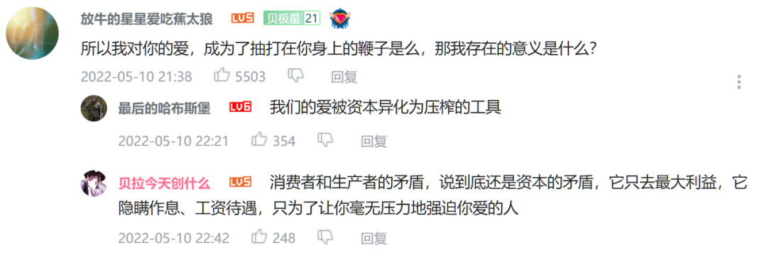 粉丝为虚拟偶像的企划所做的一切——向他人安利企划,创作周边产品,在企划作品下讨论——其实都是免费的情感劳动[6]。出于真心,粉丝能够为运营方做很多事情,而最终的经济收益,都落在了运营方的手中。
