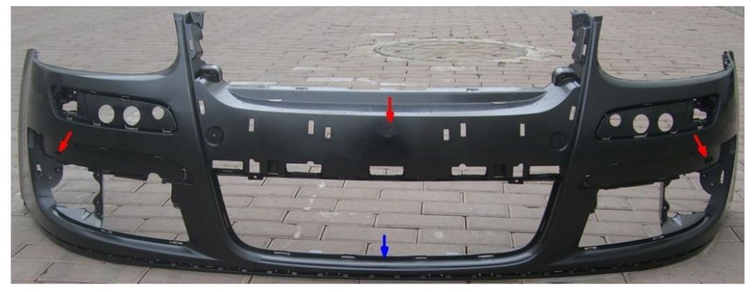 汽车前保险杠,采用三个浇口,浇口直径在 15- - 20mm ,通常情况会在挂车牌位置设置一个大的直浇口,其余浇口在一侧,采用热流道,冷浇口的模式。