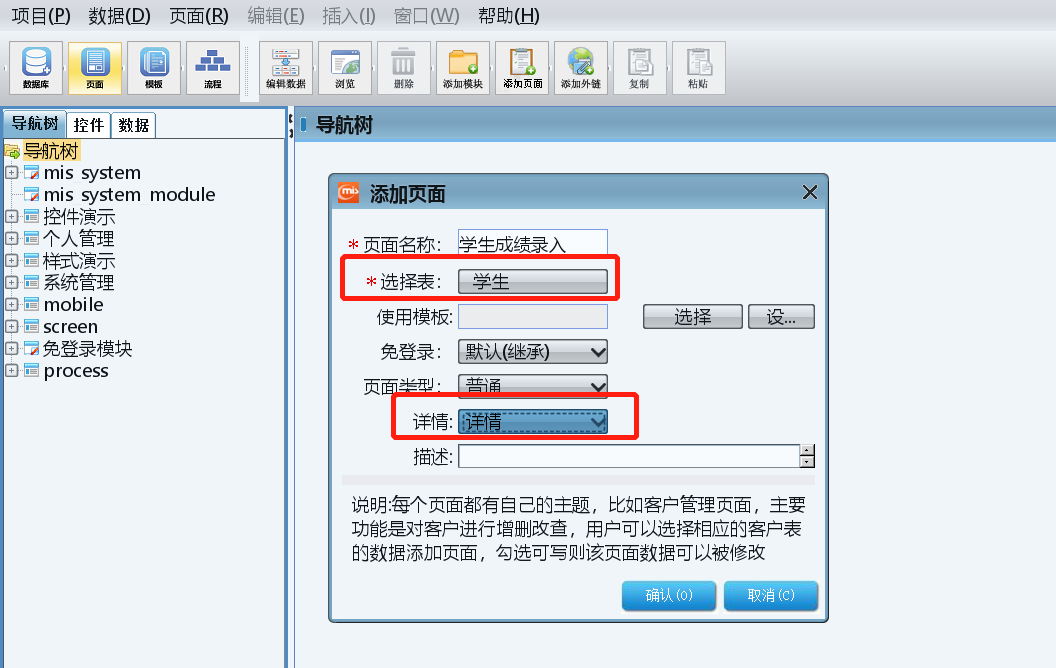 将学生表、成绩单拖拽至页面后,需要将学生表的 it.id 保存在学生表的id和成绩单的学号字段,这样的话添加的所有成绩单都是属于当前学生的。