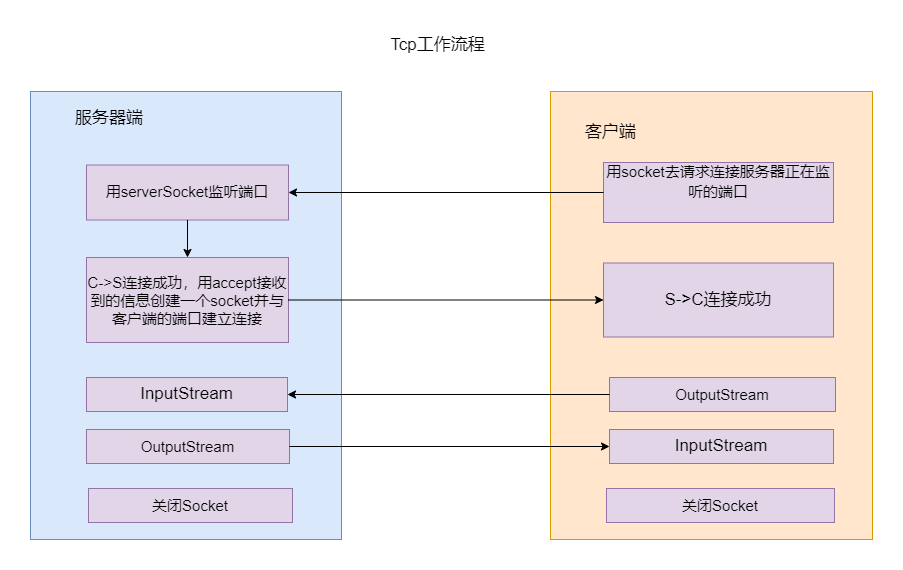 import java.io.*;import java.net.ServerSocket;import java.net.Socket;public class SocketTCPServer {public static void main(String[] args) throws IOException {//思路//1. 在本机 的9999端口监听, 等待连接// 细节: 要求在本机没有其它服务在监听9999// 细节:这个 ServerSocket 可以通过 accept() 返回多个Socket[多个客户端连接服务器的并发]ServerSocket serverSocket = new ServerSocket(9999);System.out.println("服务端,在9999端口监听,等待连接..");//2. 当没有客户端连接9999端口时,程序会 阻塞, 等待连接// 如果有客户端连接,则会返回Socket对象,程序继续Socket socket = serverSocket.accept();System.out.println("服务端 socket =" + socket.getLocalSocketAddress());////3. 通过socket.getInputStream() 读取客户端写入到数据通道的数据, 显示InputStream inputStream = socket.getInputStream();//4. IO读取, 使用字符流BufferedReader bufferedReader = new BufferedReader(new InputStreamReader(inputStream));String s = bufferedReader.readLine();System.out.println(s);//输出//5. 获取socket相关联的输出流OutputStream outputStream = socket.getOutputStream();// 使用字符输出流的方式回复信息BufferedWriter bufferedWriter = new BufferedWriter(new OutputStreamWriter(outputStream));bufferedWriter.write("hello client 字符流");bufferedWriter.newLine();// 插入一个换行符,表示回复内容的结束bufferedWriter.flush();//注意需要手动的flush//6.关闭流和socketbufferedWriter.close();bufferedReader.close();socket.close();serverSocket.close();//关闭}}