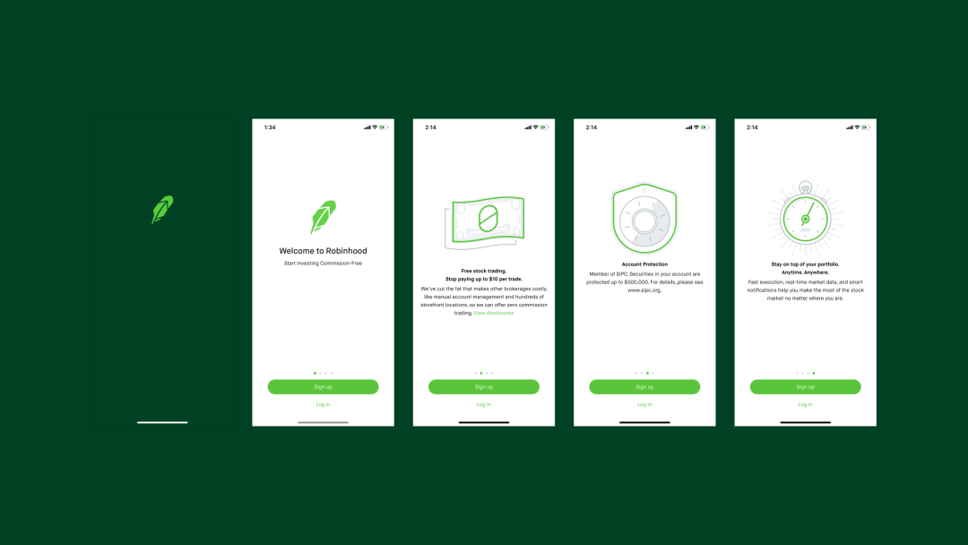 Robinhood APP 是一个很好的例子,它在新手引导流程中体现了品牌一致性。