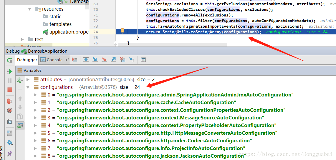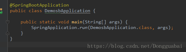 可以看到是标注在@SpringBootApplication注解上的DemosbApplication,也就是我们的主配置类: